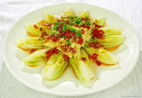 需要準(zhǔn)備的食材:娃娃菜、蒜末、姜末、干辣椒數(shù)枚、蔥花、生抽、食用醋