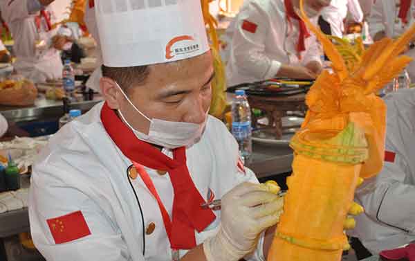 學(xué)生在學(xué)習(xí)雕刻技術(shù) 就拿上海新東方烹飪學(xué)校為例,針對(duì)初高中畢業(yè)生以及對(duì)熱衷廚師行業(yè)的學(xué)員,開設(shè)了兩年制大廚精英專業(yè),專業(yè)的培訓(xùn)人才目標(biāo)也是初高中畢業(yè)生和熱愛廚師行業(yè)選擇長期學(xué)習(xí)并為之奮斗的最終目標(biāo),所以在學(xué)習(xí)的過程中,他們無形之中就已經(jīng)結(jié)下廣泛的人脈資源,為未來工作有序開展打下基礎(chǔ)。兩年的學(xué)習(xí)過程,也讓這些學(xué)員與行業(yè)的烹飪大師有近距離接觸,為學(xué)員以后事業(yè)的發(fā)展有巨大的推動(dòng)和促進(jìn)作用。 學(xué)廚師需要多久?選擇一個(gè)適合自己的學(xué)習(xí)時(shí)間,是提高學(xué)習(xí)效率的保障之一。它就像你在為自己調(diào)一劑非大眾化的口味,無論濃郁清新,適合自己才好。