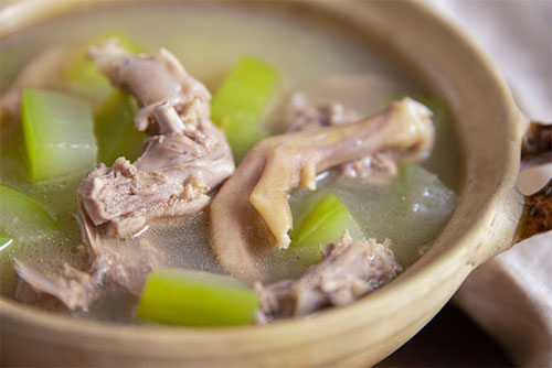 3、鴨湯撈出表面浮沫,放入泡發(fā)的筍干、咸肉,繼續(xù)燉煮30分鐘。煮至鴨肉熟爛,加白糖、少量鹽調(diào)味即可。