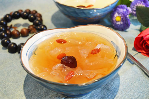 7、銀耳一定要燉煮,千萬不要隔水蒸。因為燉煮時銀耳在鍋中翻騰的越多,越容易出膠。隔水燉盅幾乎不能使銀耳翻滾,因而是煮不爛銀耳的。在高溫下,膠質(zhì)是溶在水中的,比較稀。燉煮完,湯汁由燙變溫涼后,就會黏稠起來。