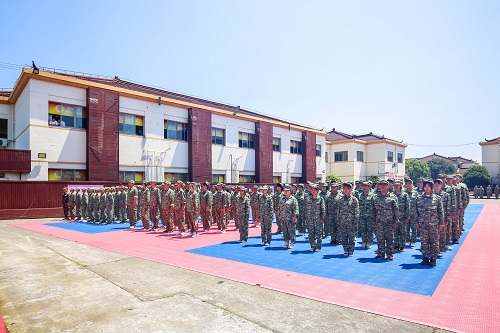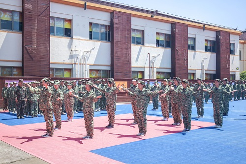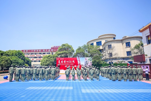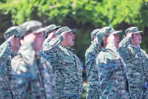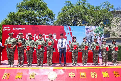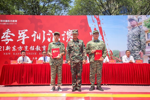 初夏微燥,陽光當空,新東方烹飪教育上海校區(qū)田徑場盛迎2021級“三教三訓”之新生軍訓(匯演)。