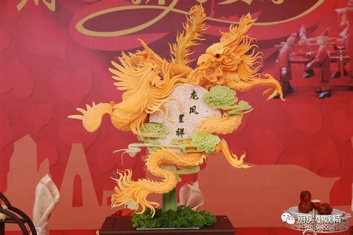 新東方烹飪教育(上海校區(qū))的學(xué)生可以將滾圓的南瓜變成踏浪的麒麟、沖天的飛龍,將普通的蘿卜變成正在展翅的雄鷹,還可以是羽色華麗的孔雀.....