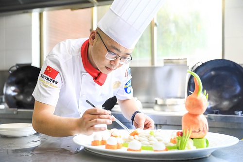 伴隨著比賽時(shí)間的推進(jìn),比賽進(jìn)入白熱化收尾階段,各式中餐熱菜、雕刻作品、西點(diǎn)作品、西餐菜肴漸漸拉開(kāi)神秘的面紗!