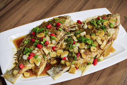 燒魚時有人喜歡把姜與魚一起下鍋,認為這樣可去除魚腥。其實不然,過早放姜會使得魚體浸出蛋白質阻礙生姜的去腥效果。可以先把魚在鍋里煮一會兒,待蛋白質凝固后再放姜;也可在爆鍋時烹入少量醋和料酒,起到去腥解膩增香的作用。如果還是覺著有腥味,出鍋前撒上點蒜末,效果非常好,特別是烹制長時間冰凍的魚。