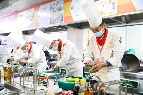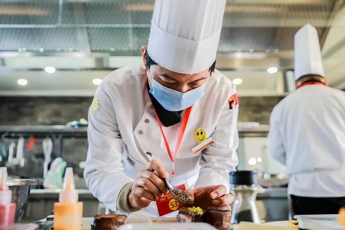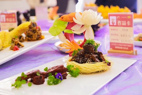 中餐組參賽老師們在規(guī)定的時間里完成比賽菜肴烹調(diào),要求參賽作品規(guī)范又不失個性;能把個人的技能展現(xiàn)出來,更加注重老師們對于菜品的創(chuàng)新能力。