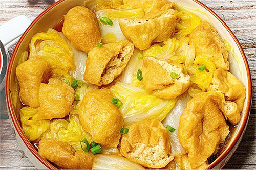 制作食材:白菜 1顆、豆泡 250克、生抽 1勺、蠔油 1勺、鹽 5克、雞汁 1勺