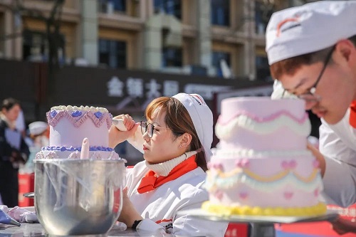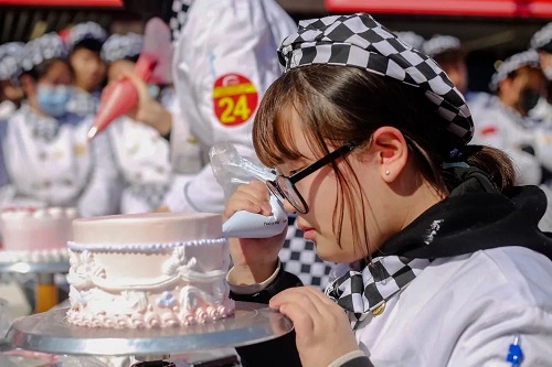 在比賽中,同學(xué)們專心致志,使出渾身解數(shù),用作品證明自己的實(shí)力,同時(shí)也是為自己所學(xué)的西點(diǎn)技能交上了一份答卷。