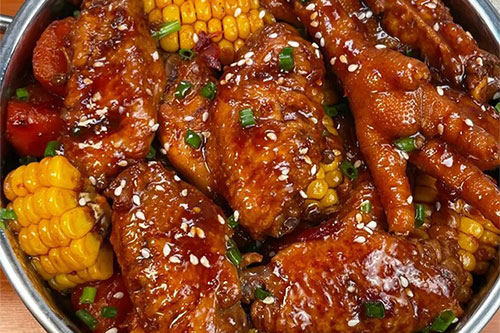 6、糖、醬油和料酒融合成濃郁的醬汁,磨一點黑胡椒下鍋,翻炒均勻,出鍋撒上芹菜葉即可。