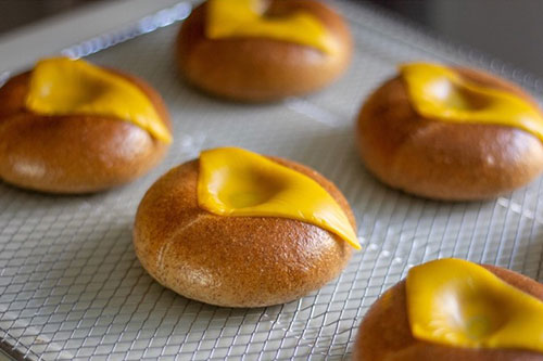 5、預熱好的烤箱220度烘烤20分鐘,出爐后立刻移到晾網上,趁熱放上切達芝士片,用余溫軟化,徹底放涼后打包密封即可。