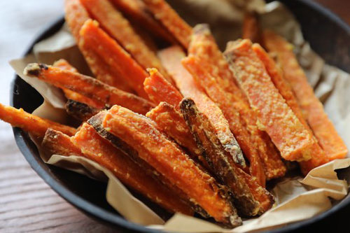 1、紅薯切的約均勻約好 大約0.8-1cm 寬度,放在一個(gè)密封盒里面搖晃均勻。