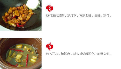 一定要炒鍋-砂鍋-炒鍋,因?yàn)橹挥贸村仌?huì)沒有酥爛的感覺,汁用砂鍋,收汁不好。沒有那種濃郁粘稠的色澤。