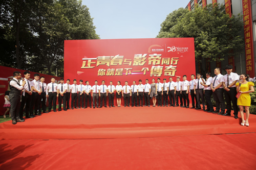 作為紅毯秀的壓軸大咖,在新華教育集團(tuán)常務(wù)副總裁許紹兵、四川新東方烹飪學(xué)院院長許邦圣的陪同下,新東方烹飪教育品牌形象大使黃渤最后隆重登場(chǎng)。在紅毯兩側(cè)粉絲們的吶喊與歡呼聲中,身著深色襯衫的“國民壞蜀黍”,帶著他標(biāo)志性的笑容,神采奕奕地向主席臺(tái)走來,將整個(gè)紅毯秀的氛圍推向了高潮,引爆新東方校園。