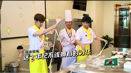 都是歌手且擁有音樂才華的二人更是渾身都是“音樂細(xì)胞”,動(dòng)不動(dòng)就發(fā)新歌。這不,在新東方烹飪學(xué)院的拉面課上兩人又即興上演“撒干粉”新曲,讓觀眾不禁直呼快讓“新大鹿”組合出神曲合輯吧。然而,在課程開始,學(xué)習(xí)拉面的制作過程中,學(xué)霸和學(xué)渣的區(qū)別瞬間就暴露出來了,小鹿同學(xué)已經(jīng)成功完成了一份拉面,而大張偉同學(xué)還在和面團(tuán)奮戰(zhàn),最后不得不佩服的說“鹿晗怎么什么都會?”