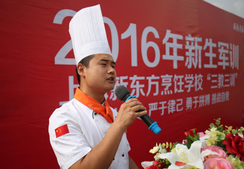 他說道,在場(chǎng)的每個(gè)人都有一份屬于自己的志向,也許遠(yuǎn)大,也許平凡,而要實(shí)現(xiàn)志向就要不懈奮斗,勇往直前,腳踏實(shí)地的走好每一步。到了上海新東方就是要想成為一名優(yōu)秀的廚師,廚師就要有強(qiáng)健的體魄、健康的身心。而這一切都離不開軍訓(xùn)的洗禮。