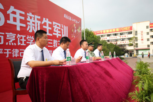 本次軍訓(xùn)開幕式出席的有我校學(xué)生處主管鄭科躍、創(chuàng)就業(yè)主管張偉偉、教師代表提勇勝以及軍訓(xùn)總教官。在我校國旗護(hù)衛(wèi)隊(duì)莊嚴(yán)地升旗儀式后開幕式正式開始。首先發(fā)言的是馬小飛老師,作為臺(tái)下新生的班主任他有很多話要告誡即將參與軍訓(xùn)的同學(xué)們。