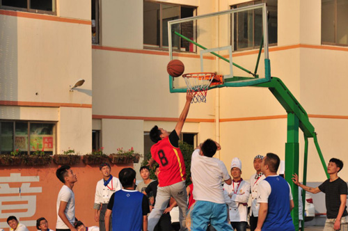 每天完成學(xué)業(yè)后學(xué)校的籃球場(chǎng)一直是學(xué)生們最喜愛的根據(jù)地,青春洋溢的小伙子們?cè)诨@球場(chǎng)上肆意奔跑,揮灑汗水。而這次舉辦的籃球賽無疑點(diǎn)燃了所有學(xué)生們的積極性。參賽的男生們?cè)缫研顒?shì)待發(fā),而女生們則占據(jù)有利位置準(zhǔn)備加油助威。